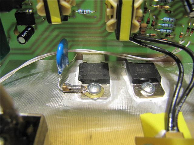 Это хорошие диоды, но есть у них серьёзный недостаток: их анодные выводы, не смотря на довольно внушительный вид, оч. плохо переносят механические нагрузки. Но именно такая установка этих диодов ну просто гарантирует значительные нагрузки на корпус диода в зоне анодного вывода даже при небольших ускорениях по вертикали из-за неизбежных колебаний радиатора относительно платы. Регулярная небольшая нагрузка такого рода приведёт к появлению микротрещин в корпусе, попаданию туда влаги и грязи с печальным исходом. А при однократном большом ускорении корпус диода просто сразу хруснет возле анодного вывода. Ферштейн?