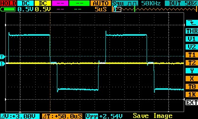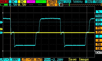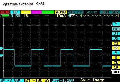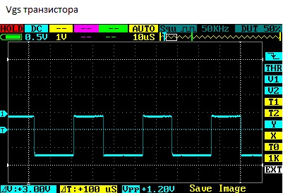 После переделки и подключении затворов силовых транзисторов сигнал немного ровнее (на рисунке)