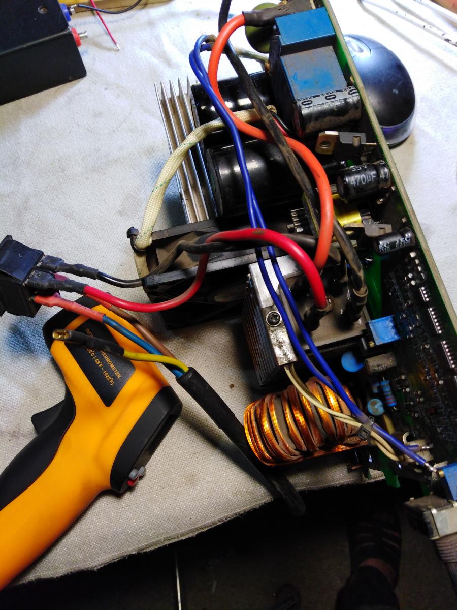 Да тут хайдук полный. - брехняяя:D - и не такое делал. Делай как я - 1.Запускаем компрессор - 8 атм. на продувочный пистолет и будет блестеть как у кота. 2. выпаиваем 4 транзистора, только так что бы не сорвать металлизацию (если не умеете или не знаете как лучше к мастеру). 3. включаем в сеть и смотрим осциллографом бегло что на затворах (осциллограф должен быть изолирован от сети или осцил. с автономным питанием ) 4. если на затворах видим нормальные сигналы, то не ленимся припаять эквивалент затворной ёмкости и смотрим снова сигналы на затворах. 5 если сигналы нормальные на затворах то тогда запаиваем транзисторы и в разрыв +320 вольт после конденсаторов фильтра ставим лампочку 220 вольт ватт 100-150. 6. латром подаём питание и увеличиваем до 220вольт -если всё нормально, то лампа светится не будет и на выходных клеммах будет вольт 60 плюс-минус.7. убираем лампу и включаем в сеть. 8. на выход вольтметр - регулятор тока на минимум и через амперметр нагрузку ( у меня разные нагрузки от 5 Ом до нуля ) нагружаем Большим по номиналу сопротивлением и уменьшаем сопротивление нагрузки и смотрим на вольтметр и амперметр - то есть нужно убедиться в том что обратная связь по току работает, таким образом можно посмотреть максимальный ток аппарата.9. если всё работает - электрод в держак и поджигаем дугу увеличивая ток регулятором до стабильного горения дуги.