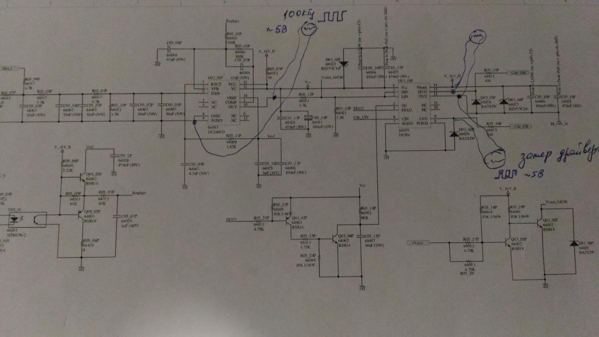 На питания ШИМ идет резистор R03_03P - прозвонил сопротивление 35 Ом вместо 10 по мануалу.