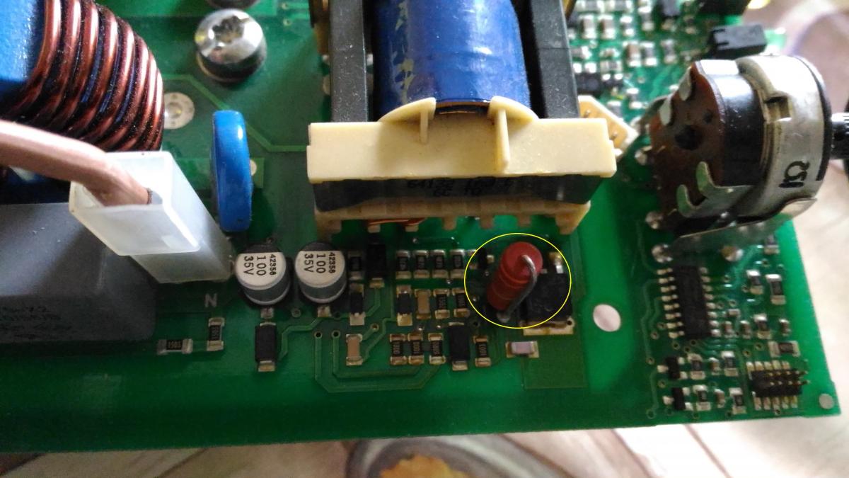после перепайки драйвера стал сильно греться не транс - а вот этот резистор 330Ом