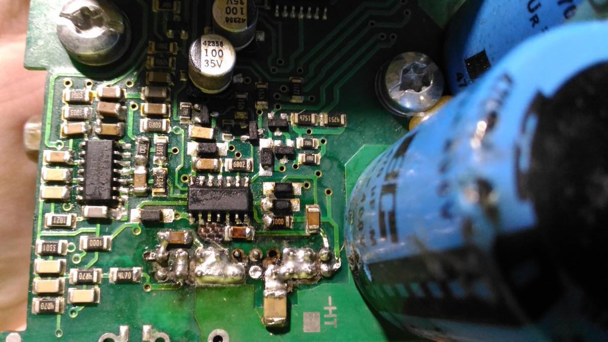 3. Подпаял лампочку 100Вт в разрыв +310В на плате - перерезал дорожку