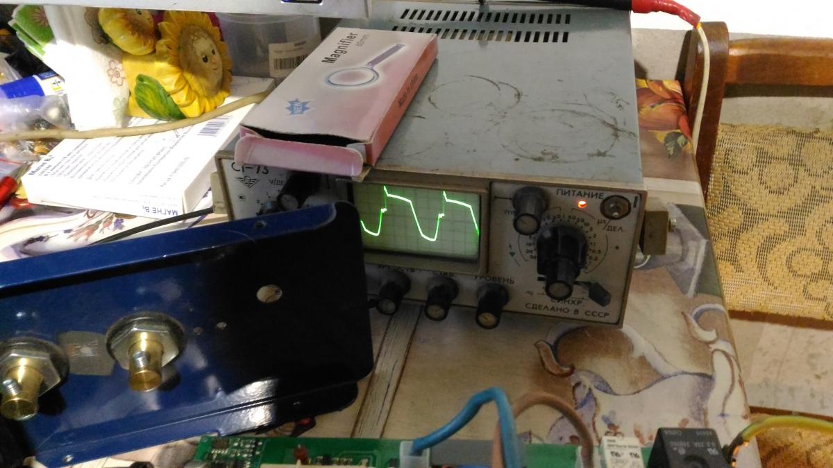 Включил в сеть 220В без лампы в цепи +310В. вот форма импульсов на выходе