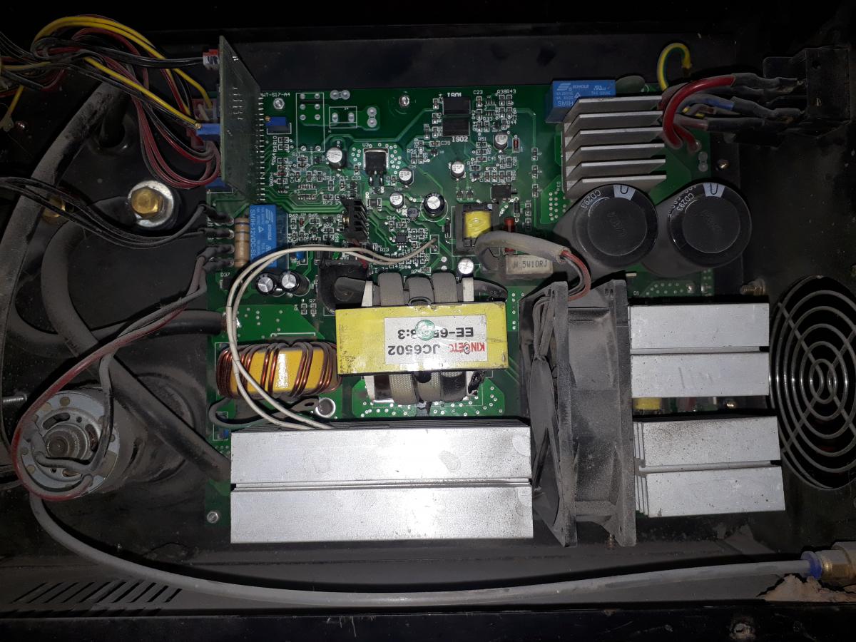Доброго Всем дня. Меня зовут Владимир. Сам я из Белоруссии, г. Орша. Ремонтом сварочных занимаюсь не очень давно. Прошу помощи. В ремонт пришёл п/автомат DGM DOUMIG 220p. С неисправность не работает протяжка. При вскрытии обнаружил сгоревшую микросхему, которая ,по всей видимости , отвечает за переключение с режима MMA на режим MIG