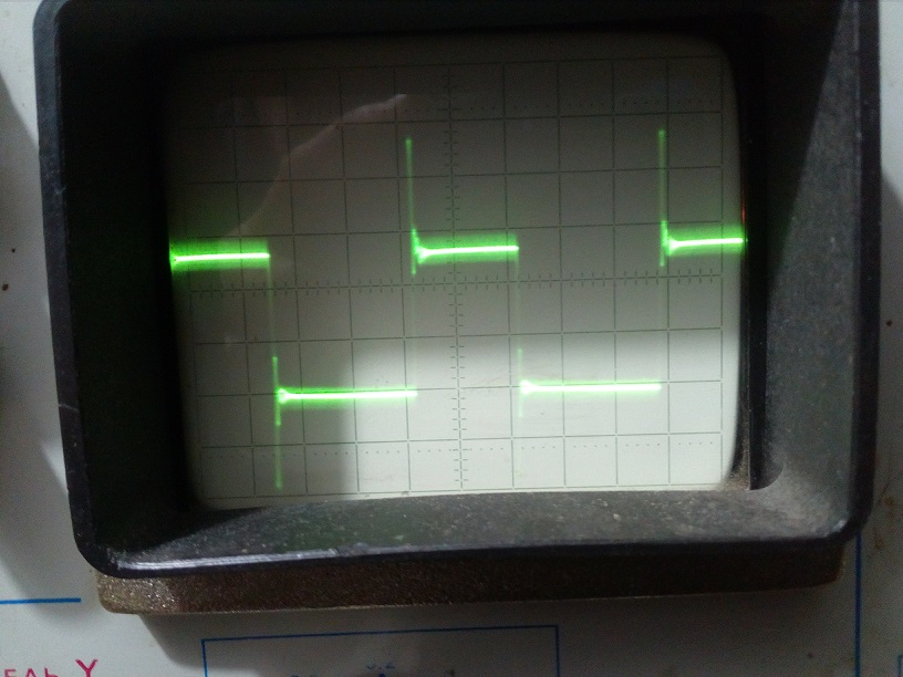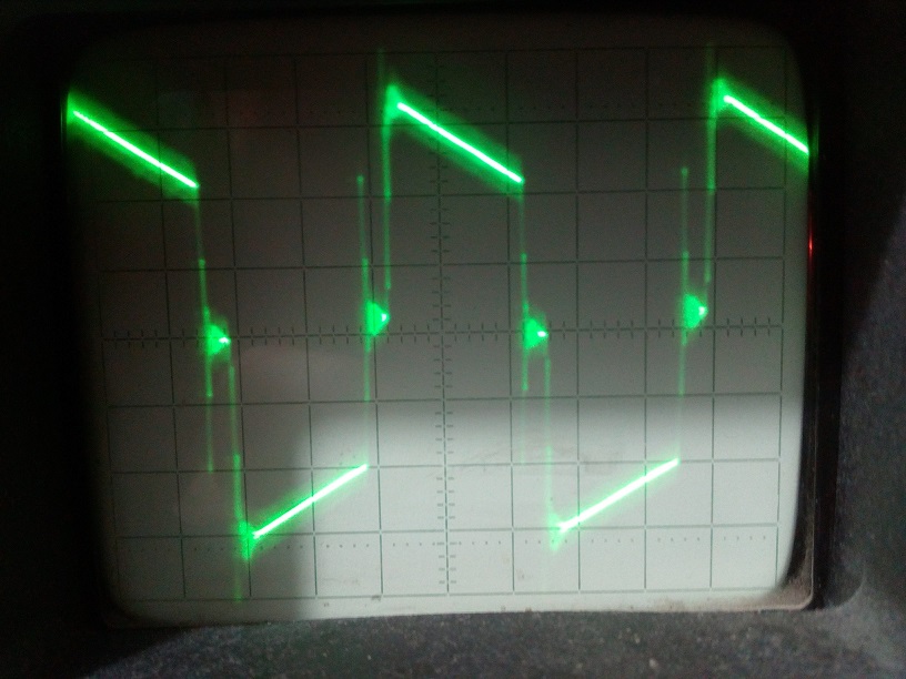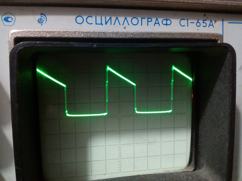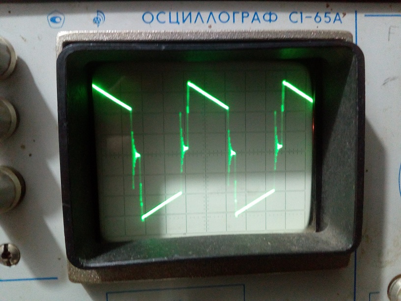 Я подключил общий осцыла к началу первички ТГР, а щуп к концу обмотки первички и увидел полный сигнал на первичке ТГР. Он имеет вид как на фото выше,только симметрично по вертикали